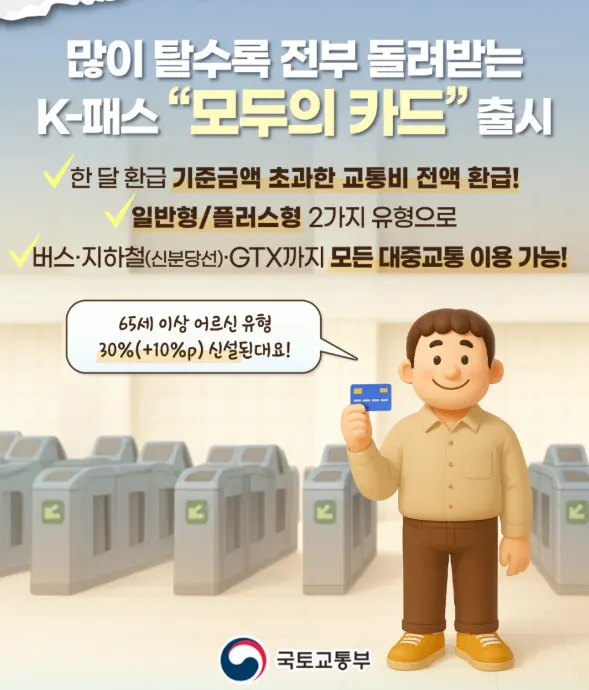 초과분 전액환급! 무제한 대중교통 정액패스 2026 K-패스 ‘모두의 카드’란? 달라지는 환급 핵심 요약