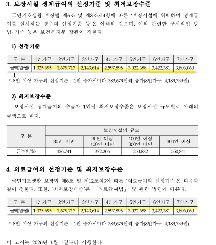 [2026년 가구별 선정기준액]